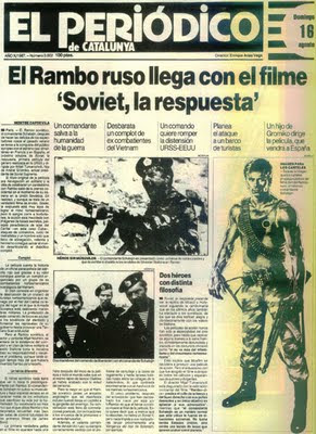 | Soviet, la respuesta Eran otros tiempos y los soviéticos debían de estar un poco hasta el gorro de ver como el planeta capitalista se entretenía viendo a Rambo y a desaparecido en combate defender al mundo de los malvados rusos.